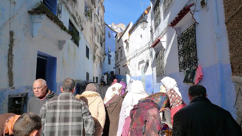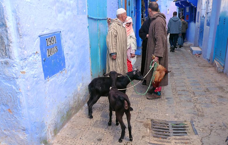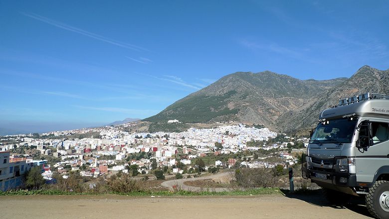 Es geht langsam und steig bergauf voran bis wir in Chefchaouen sind und über den ersten Mini-Souk gehen. Von dem Angebot ist man immer überrascht. Chefchaouen gilt als eine der schönsten Städte Marokkos.