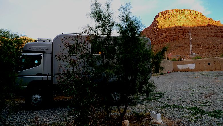 An der Kasbah Jurassique (3 km nach dem Legionärstunnel) lassen wir es für heute gut sein und beziehen Quartier.