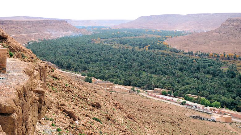 24.12.2014Wir fahren durch Er Rachidia und gelangen wieder zum Zis-Tal. Hier, in rd. 1.000 m Höhe bildet das Tal ein Flußoase, die solang besteht, bis der Zis in der Wüste versickert ist.