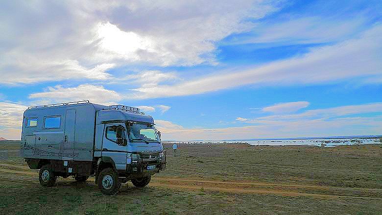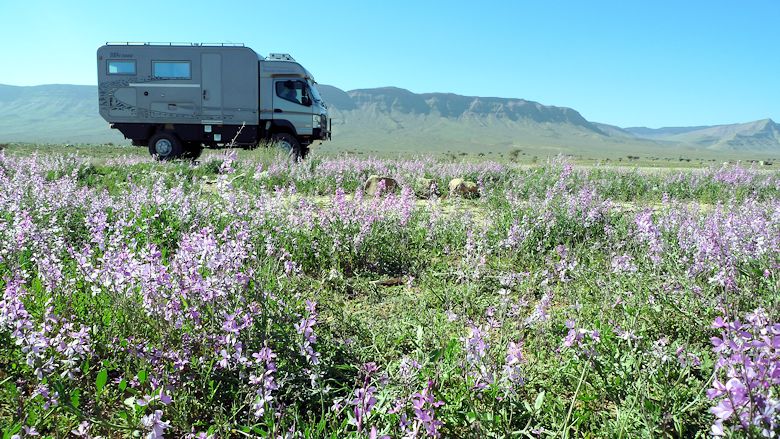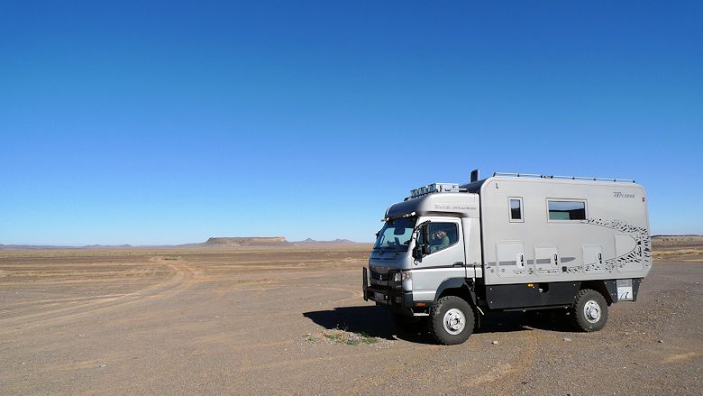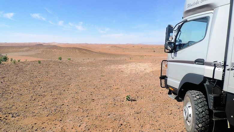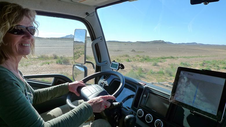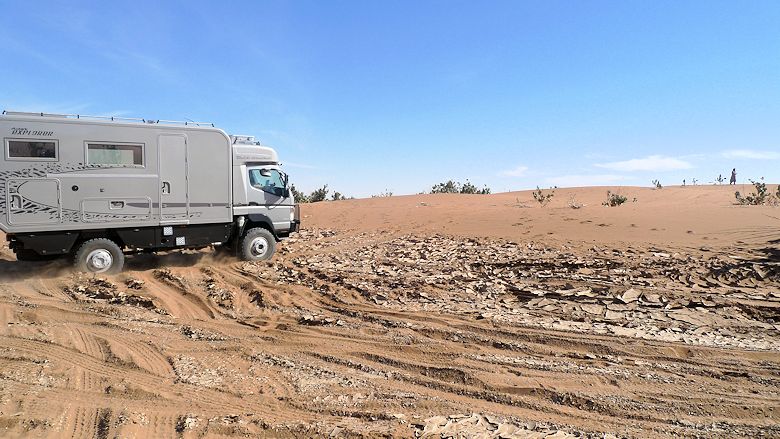 Es gilt Dünengebiete zu umfahren und in der Steinwüste die ebensten Untergründe zu finden. Da wir noch