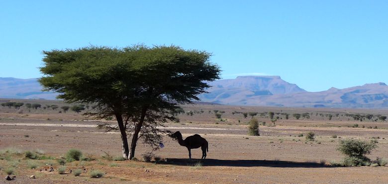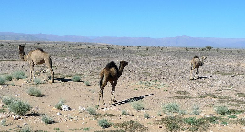 Die Wüste in Marokko besteht meistens aus Steinwüste. Nur an bestimmten Stellen (Erg Chebbi,
