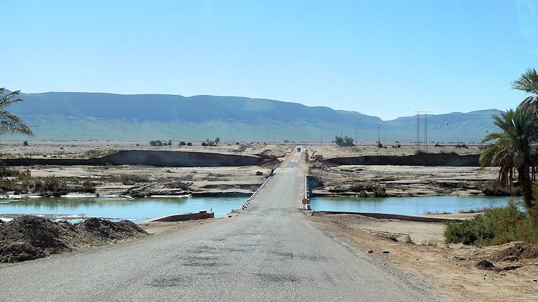betroffen hatten. Die Straße von Guelmim her war kurz vor Sidi Ifni ziemlich weggespült.