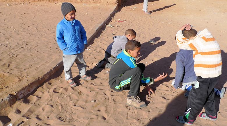 Die Kinder spielen tatsächlich noch mit Murmeln.