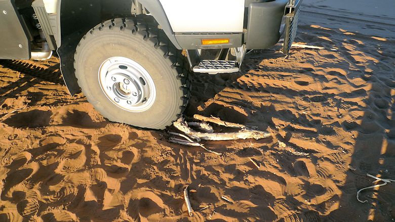 Beim hinfahren an den Standplatz auf der Düne haben wir uns ein wenig eingebuddelt. Mustafa hat