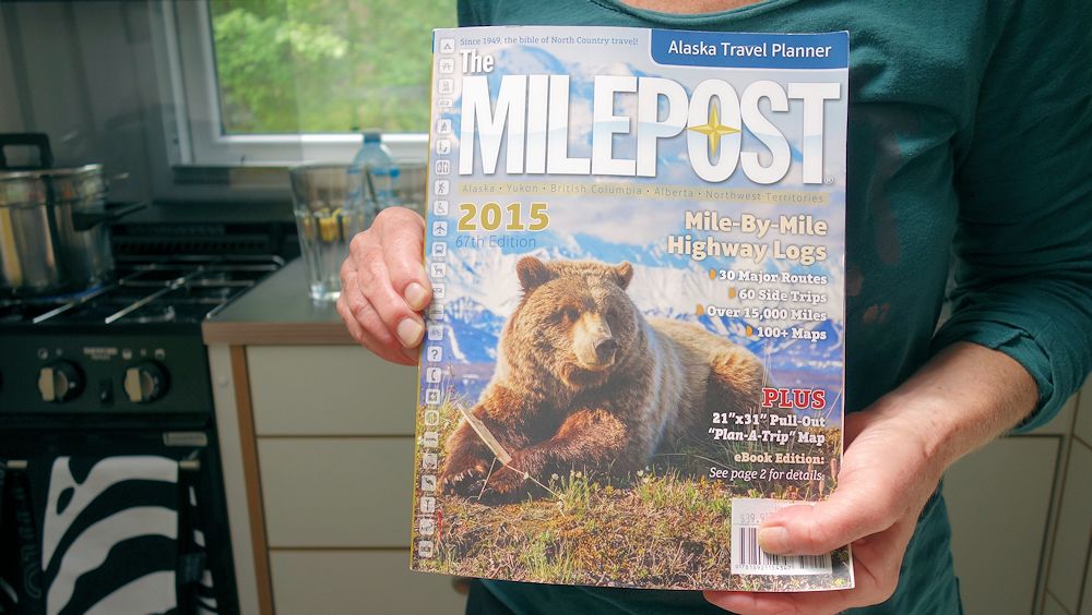 MilepostIn Dawson Creek haben wir uns den "Milepost" zugelegt. Das ist die Reisebibel für Alaska und Nord-Kanada. Jeder km wird erklärt. Da steht zum Beispiel beim Alaska Highway:
