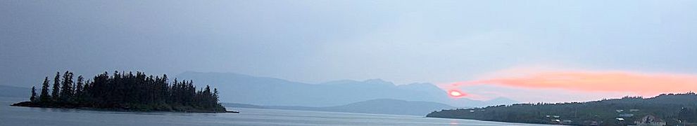 Wir passierten die Five Finger Rapids und außer dem extrem dunstigen Wetter (wie Nebel) war nicht viel los. Später erzählte uns ein ausgewanderter Nürtinger im feinsten schwäbisch das er bei der Waldbrandbekämpfung im Einsatz sei und gerade Flugbenzin für die Löschhubschrauber transportiere. Auf unsere Frage wo es denn brennt sagte er: "Überall". Allerdings haben wir außer dem "Nebel" nichts mitbekommen.