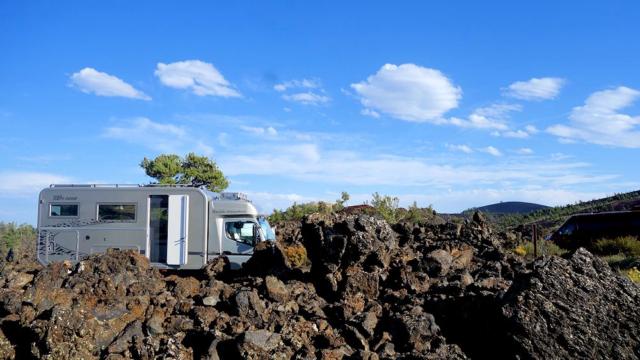 Wir fuhren weiter bis zum Craters of the Moon National Monument and Preserve. Der letzte Vulkanausbruch dieser Gruppe von Vulkanen hier geschah vor 2.000 Jahren (wie der Vesuv in Pompeji) und hinerließ eine "Mondlandschaft" bis heute. Auf dem zugehörigen Campground fanden wir noch ein Plätzchen (10 $). Im Gegensatz zu den Plätzen am Salmon River, die fast alle leer waren, war es hier ziemlich voll. Nächsten Montag ist Labour Day, hier endet die Tourismussaison in den meisten Gebieten.