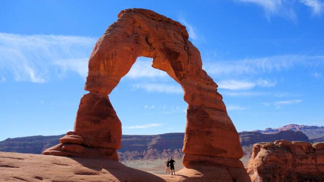 Der Delicate Arch macht seinem Namen alle Ehre: ein delikater Anblick. Zum obligatorischen Foto muss man sich in einer Schlange anstellen und hat dann den Arch für sich. Die Japaner posen in Kung-Fu Stellungen, der Rest reißt die Arme hoch.