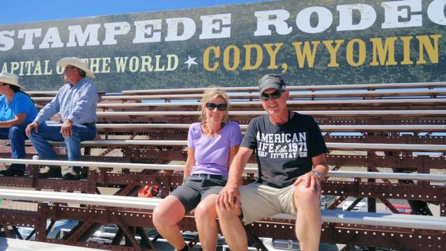 Bei der Einfahrt in die Stadt kamen wir am Rodeo Station von Cody vorbei (Cody ist natürlich auch Rodeo Hauptstadt der Welt). Da irgendwas da abging schauten wir mal vorbei. Es waren wohl irgendwelche Qualifizierungs-Wettkämpfe im Gange. Wir setzten uns auf die Tribüne und schauten den Cowgirls (es waren in der Zeit nur die Mädchen am Start) zu, wie sie Kälber mit dem Lasso fingen. Also fingen ist übertrieben, weil sie, falls sie das Lasso um den Hals des Tieres werfen konnten, es dann los ließen, offentsichtlich um das Tier zu schonen.