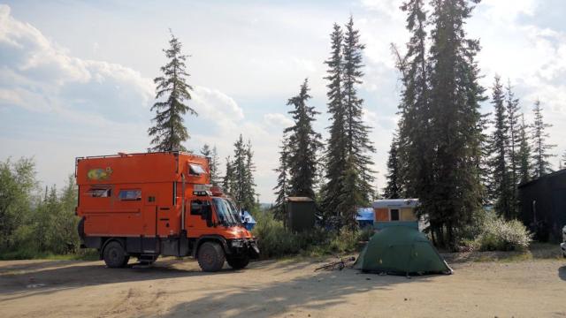 Der Unimog von Brad und Oksana und das Zelt von Urs