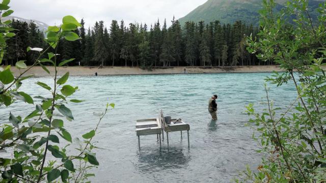 16.07.2015 Kenai River (die Fischputzstation steht aus Sicherheitsgründen gleich im Wasser)