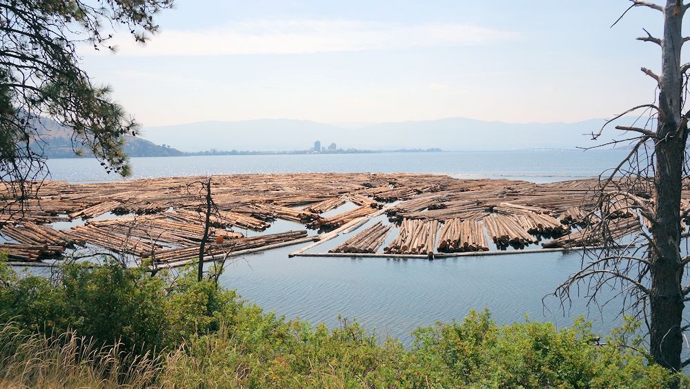 11.08.2015: Okanagan Lake, im Hintergrund Kelowna und rechts im Hintergrund im Dunst die Brücke durch den Okanagan Lake
