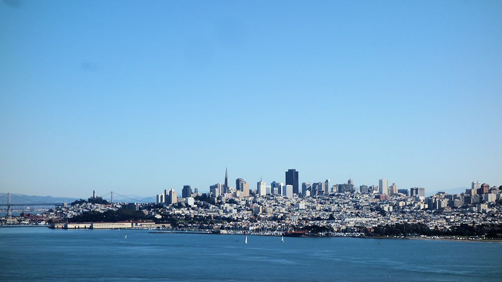 Skyline von San Franciso von der Golden Gate Bridge aus