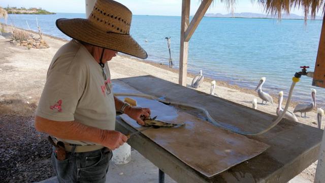 aber kaum hat Eric begonnen die Fische auszunehmen