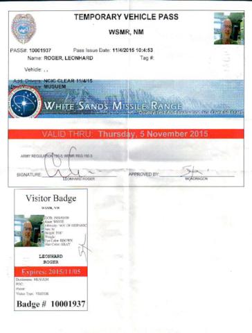 Besucherausweis White Sands Missile Range