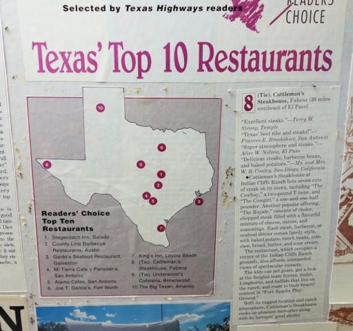 .... gehört zu den Top Restaurants in Texas (ganz links)