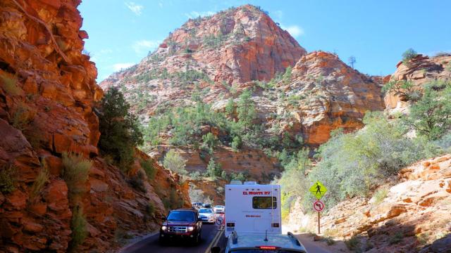Zion National Park, wir warten auf die Blockabfertigung