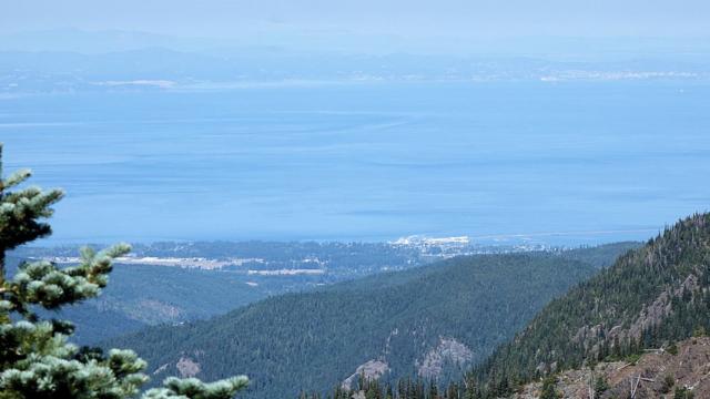 Olympic National Park: im Vordergrund am Meer Port Angeles, im Hintergrund ganz schwach zu erkennen Vancouver Island und Victoria