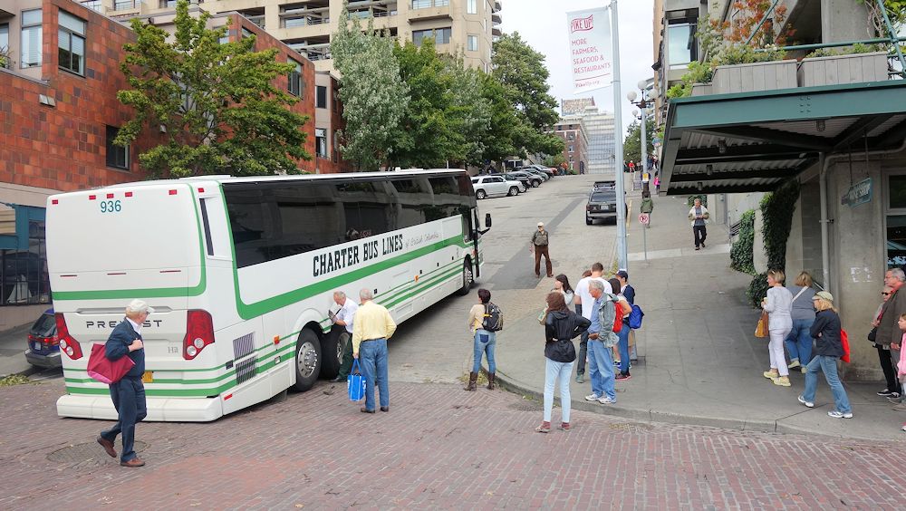 Der Busfahrer hat die Steilheit der Straßen in Seattle unterschätzt. Er hing dort stundenlang.