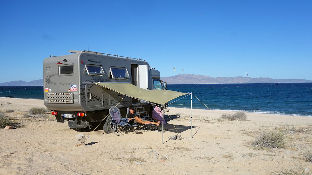 Ein paar km nördlich befindet sich auch ein Surf-Strand, an dem wir bleiben wollten. Später trafen auch noch Laura und Martin aus Leipzig ein, die ein Jahr die Amerikas, bereisen mit Backpack und Mietauto. Wir hatten die Beiden schon in La Ventana kurz kennengelernt.