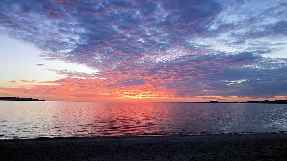 Am Montag (22.02.2016) saßen wir spontan zusammen, als ein spektakulärer Vollmond über dem Golf von Californien aufging. Es war eigentlich wie ein umgekehrter Sonnenuntergang als die rötliche Mondscheibe langsam aus dem Meer auftauchte und allmählich in seine normale gelbgräuliche Farbe überging. So hatten wir das noch nie gesehen.