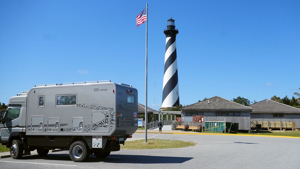 10.04.2016 Der Leuchtturm in Cape Hatteras und 6 Nebengebäude wurden 1999 in einer spektakulären Aktion um fast einen km versetzt. Das deshalb, weil die Outer Banks in einem ständigen Prozeß sich verändern und die Küstenlinie dabei verschoben wird. Der Leuchturm in Hunting Island wurde deshalb sogar gleich so konstruiert, das er abgebaut und wiederrrichtet werden konnte. Das war bei dem 1870 errichteten Leuchturm in Cape Hatteras nicht möglich und so wurde er einfach versetzt.