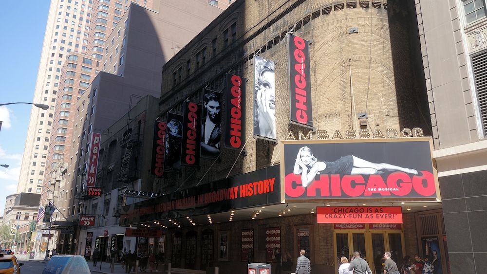 Beim zweiten Anstehen hat es dann mit Barzahlung geklappt. Unter der großen Auswahl an Broadway und Off-Broadway Stücken haben wir uns für das Musical Chicago entschieden, das seit 1996 in New York aufgeführt wird. Seit 2003 in diesem Theater. By the way: Die meisten "Broadway Theater" sind gar nicht direkt am Broadway, sondern in Seitenstraßen.