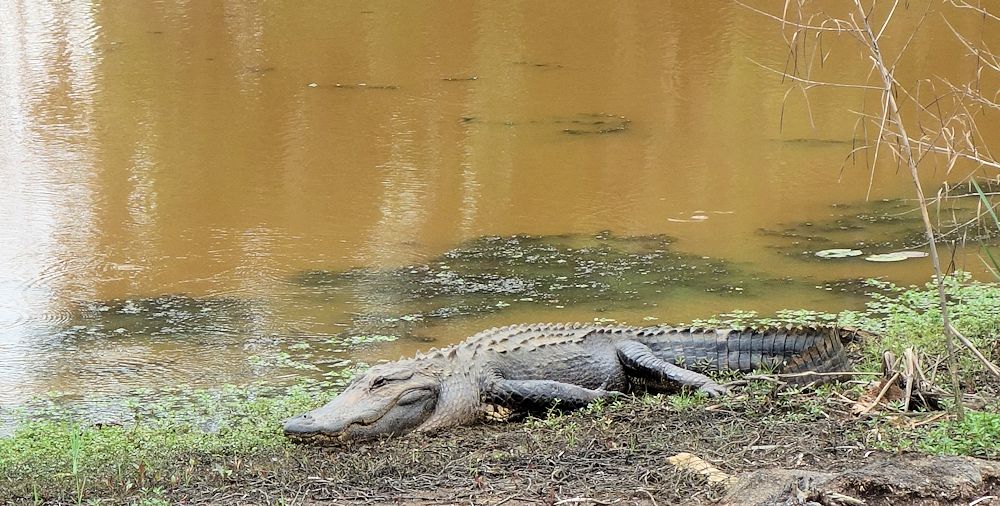 Dann lag auch noch das Savannah National Wildlife Refuge am Weg. Dies liegt schon in South Carolina und man kann auf einem geschottertem Rundweg, so 8 km lang, durch die Sumpflandschaft fahren. Viele Vögel gibt es zu sehen aber am meisten faszinieren natürlich die Alligatoren, von denen es relativ viel, nur ein paar Meter vom Wegrand entfernt, zu sehen gibt.