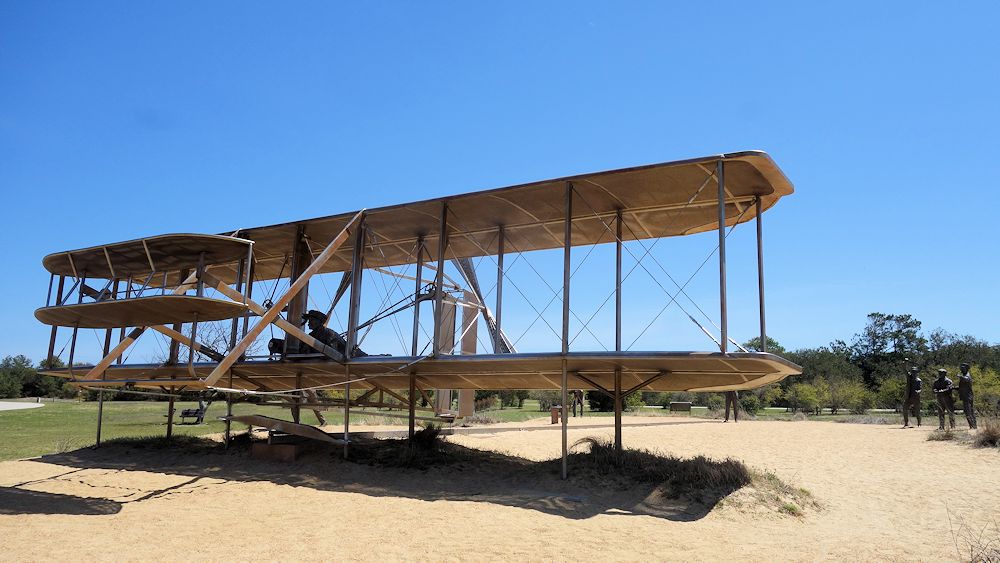 "First in Flight" steht auf vielen Autokennzeichen in North Carolina. Es müsste korrekterweise "First in Motor-Flight" heißen. Aber die Gebrüder Wright haben alle ihre Flugversuche bestens dokumentiert und auch das sie auf die Hängegleiter Flüge von Otto Lilienthal aufgebaut haben. Lilienthal (tödlich verunglückt mit einem Hängegleier 1896) hat entdeckt, das Tragflächen gebogen sein müssen, um Auftrieb zu erzeugen.