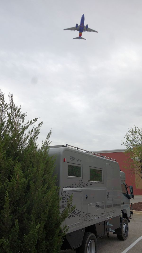 Wir standen genau in der Anflugschneise, aber am späten Abend hörte der Flugverkehr fast auf.
