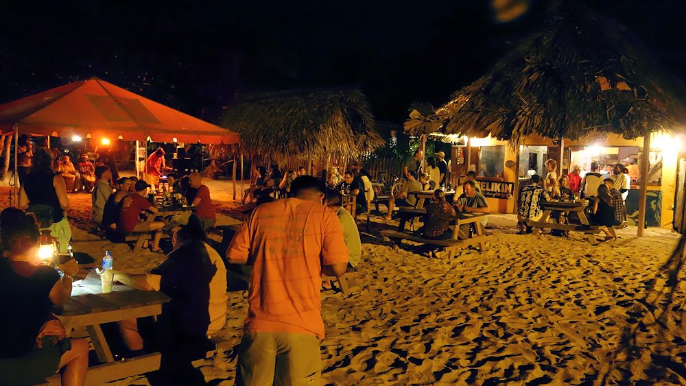 08.11.2016, Hopkins (Driftwood Beach Bar), Stann Creek, BelizeJeweils Dienstags ist Live-Musik an der Driftwood Beach Bar. In Hopkins werden T-Shirts verkauft mit der Aufschrift: "Hopkins, Drinking village with a fishing problem". Das scheint exakt zuzutreffen. Mit Fisch haben sie nicht so viel am Hut, dafür aber floss Bier und Rum in Strömen.