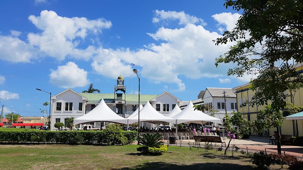 13.11.2016, Dangriga, Stann Creek, BelizeWir sind heute wieder nach Norden, nach Dangriga, gefahren, weil wir ja Morgen nach Tobacco Caye wollen. Dazu müssen wir mit dem Boot von Dangriga hinüberfahren und das Fahrzeug für zwei Nächte unbeaufsichtigt stehen lassen. Das wollten wir nicht riskieren und haben daher nach einem sicheren Platz gesucht.
