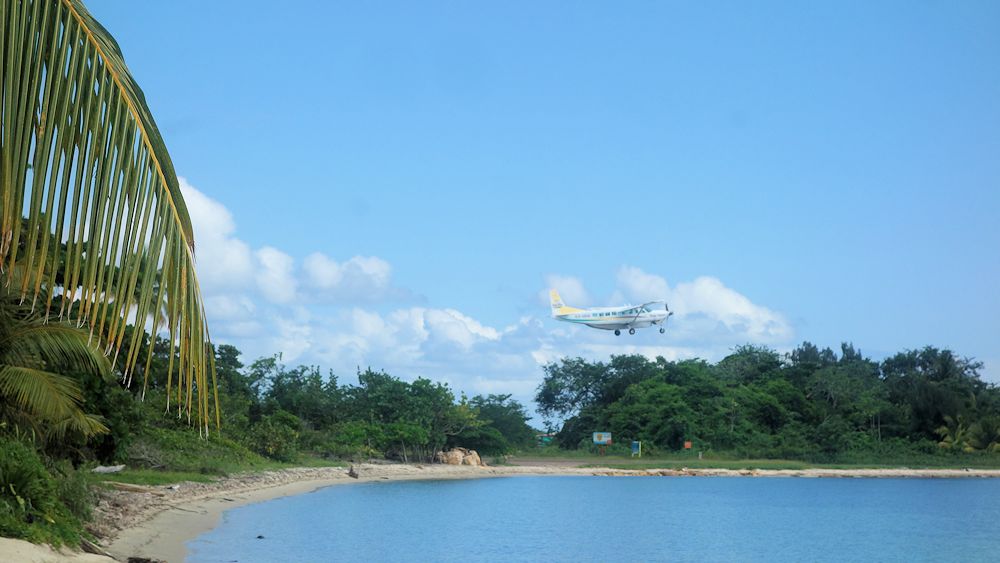 Neben unserem Ressort ist der kleine Flughafen und mehrmals am Tag starten dort Maschinen zu den Cayes, den vorgelagerten Inseln mit meist teueren Lodges.