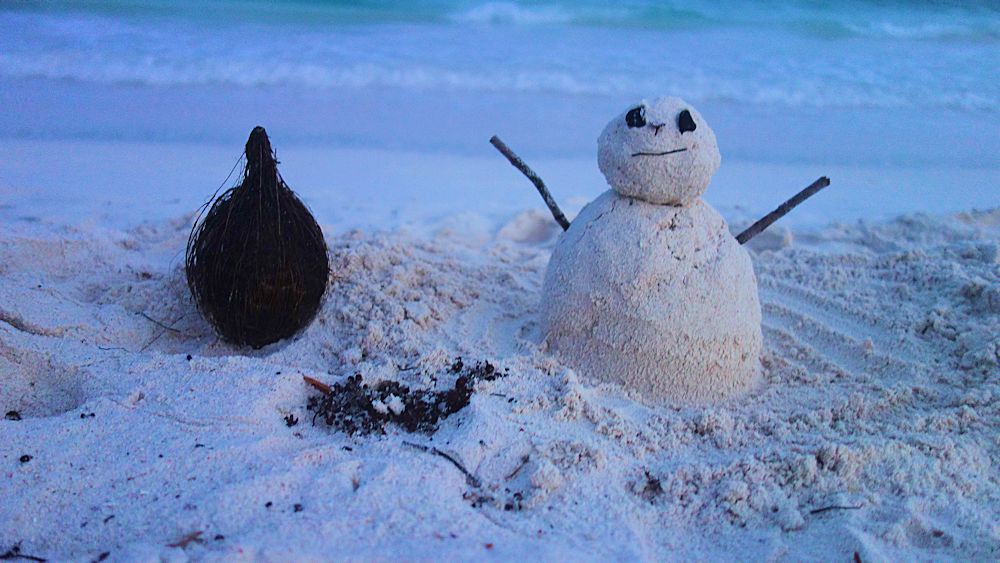 Dienstag (06.12.): Heute, am Nikolaustag, wurden "Schneemänner" am Strand gebaut.