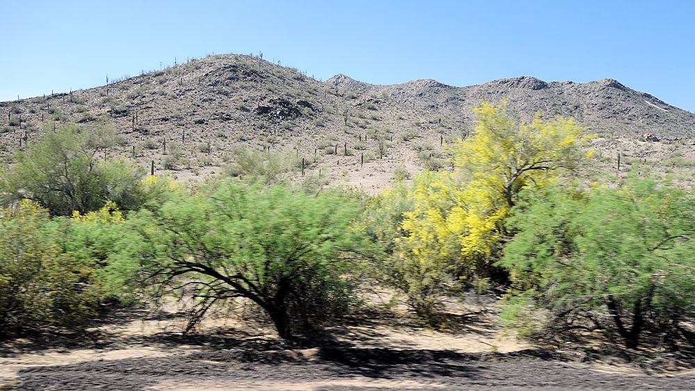 Durch die Sonora-Wüste fuhren wir zum idealen Zeitpunkt: Es blüht hier überall, wie hier die Palo Verde Bäume