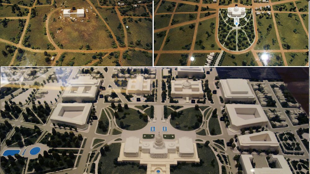 Das Kapitol 1815 (oben links), 1851 (ober rechts) und heute