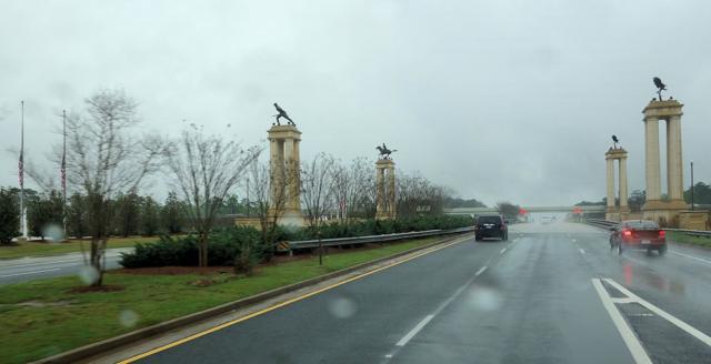 Fort Benning Truppenübungsplatz bei Columbus (Georgia): Man fähr auf dem Highway mitten durch