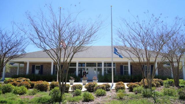 Die Flaggen sind wegen der kürzlichen Brüssel-Terroranschläage auf Halbmast