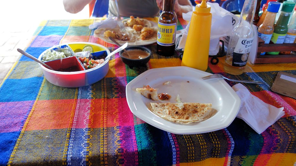 Für uns gab es Quesadillas (mit Käse gefüllte Tacos) und Tacos mit Camarones (Shrimps)