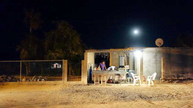 Der Hot Dog Stand in der Nacht unter dem Vollmond ist wie aus einem Gemälde von Edward Hopper