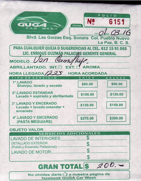 Bei der Autowäsche wurden wir als "Van Camuflaje" berechnet, also als Tarnfahrzeug