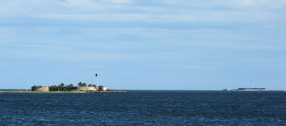 Fort Moultrie und Fort Sumter bewachen die Einfahrt nach Charlston. Mit der Beschießung von Fort Sumter begann der amerikanische Bürgerkrieg am 12.4.1861.