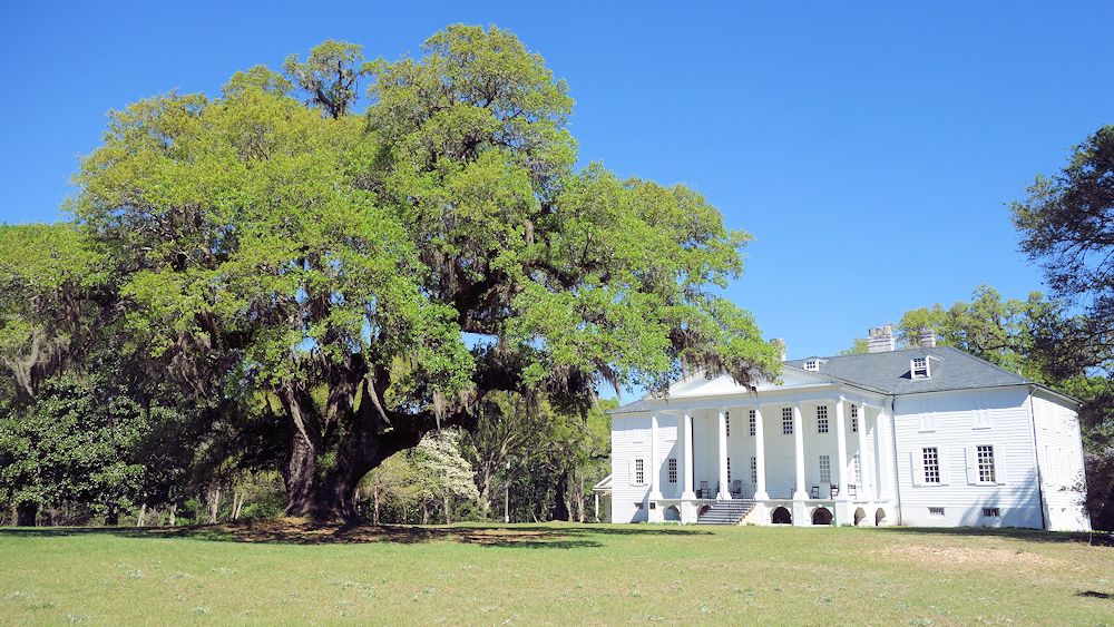 Die Hausherrin wollte die Eiche fällen lassen, wegen der Aussicht. Der zufällig anwesende George Washington sagte "Let the tree stand", und so rettete er die Eiche (der Legende nach):