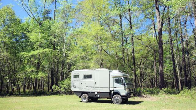 Stellplatz auf einer Waldlichtung in der Einsamkeit.