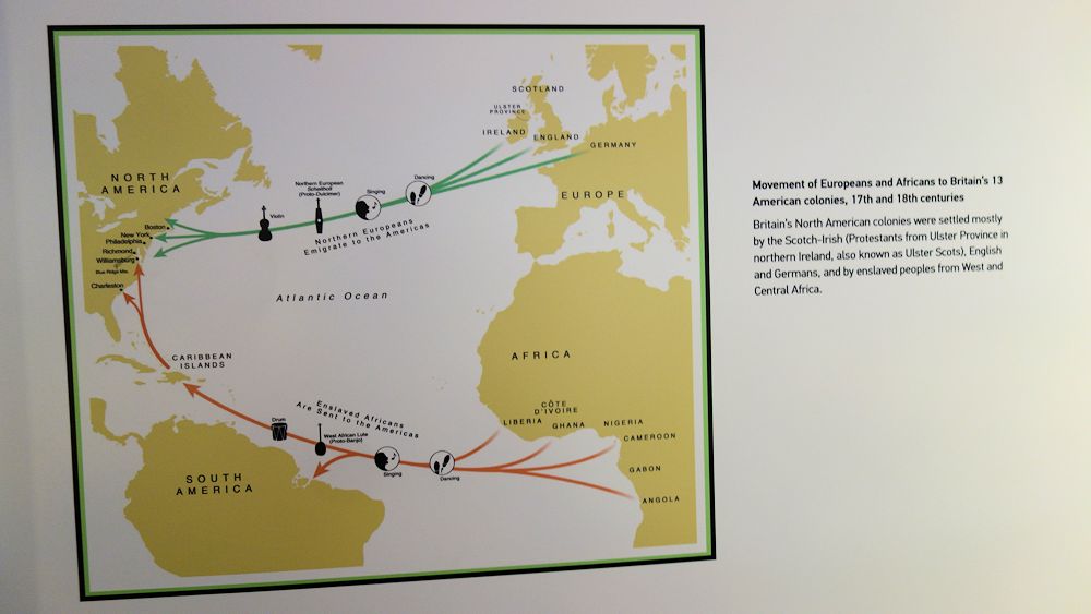 Blue Ridge Music Center: Aus diesen Ländern kamen hauptsächlich die Einwanderer im 18. und 19. Jahrhundert und diese Einwanderer beeinflussten auch die amerikanische Musik