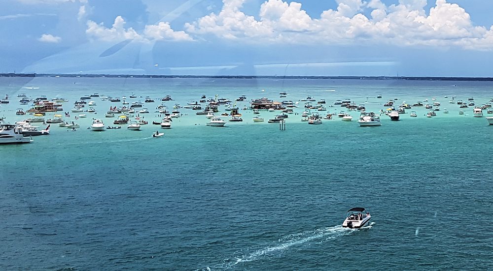 Während dessen geht im Wasser der Punk ab: im einen Meter hohen Wasser ankern die Boote und die Leute stehen bis zu den Hüften im Wasser und feiern