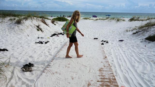 Der weiße Traumstrand am Pensacola Beach: Da tut man gerne die Schuhe runter um in diesem herrlichen Sand zu laufen.