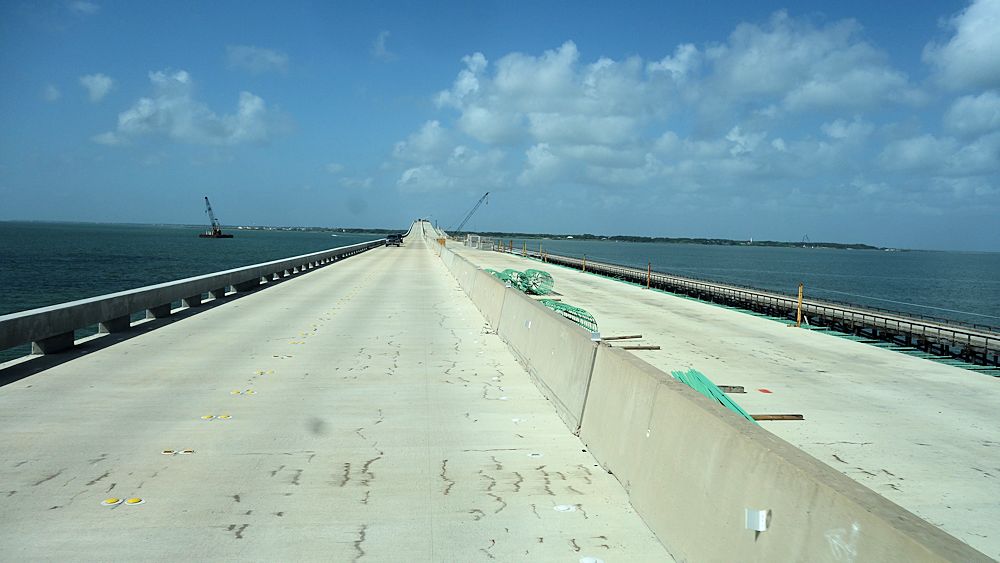 Der Lyndon B. Johnson Causeway überquert die Copano Bay bei Rockport