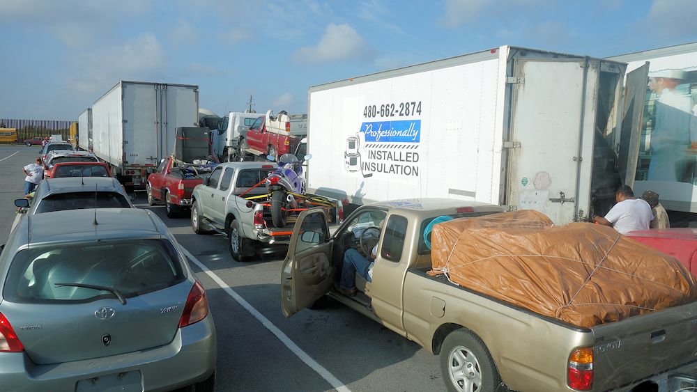 Grenze zu Mexiko (noch auf der US-Seite): hauptsächlich alte PKW werden nach Mexiko gekarrt