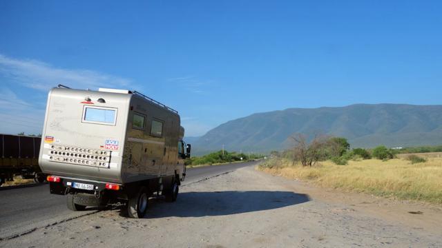 Nach zwanzig km heute erreichen wir den Fuß der Sierra Occidental.